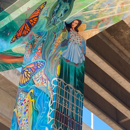 This mural also tells the story of the abuse of migrants seeking for a better life - including the brutal imprisonment, neglect, and abuse of innocent children. The mural project is an act of collective healing where justice has been elusive for the individuals, their families, and the communities that confront this inhumanity on a daily basis."